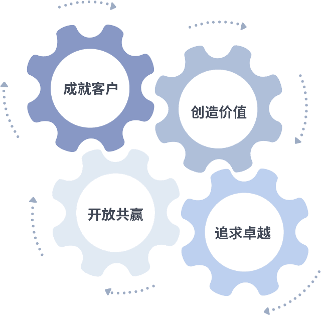 成就客户是一切决策的出发点,,,,创造价值是衡量所有工作的标准,,,追求卓越是4001百老汇做事做人的态度,,,,开放共赢是4001百老汇的格局也是最终的结果。。。。价值观的齿轮环环相扣,,推动着组织里的每个人不断向前。。